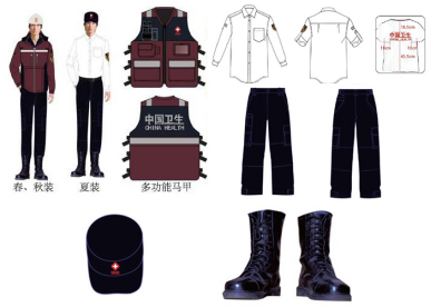 衛(wèi)生應(yīng)急服裝是由冬、春、秋三款服裝。統(tǒng)一是由馬甲、圓領(lǐng)衫、戶外帽、戶外靴、臂章組成。目前我們看到執(zhí)行工作者所使用的是2011款式,下面就以該款為例分別進(jìn)行圖解。