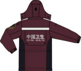 衛(wèi)生應(yīng)急服裝背部標(biāo)識為銀色反光字(中國衛(wèi)生CHINA HEALTH),以突出現(xiàn)場衛(wèi)生應(yīng)急救援的視角效果,背部標(biāo)識可以隱藏。這種分拆式和可藏式設(shè)計(jì)相結(jié)合,以便區(qū)分日常和應(yīng)急工作的識別特點(diǎn)。內(nèi)膽采用黑色抓絨面料,折卸后可單獨(dú)穿著使用。